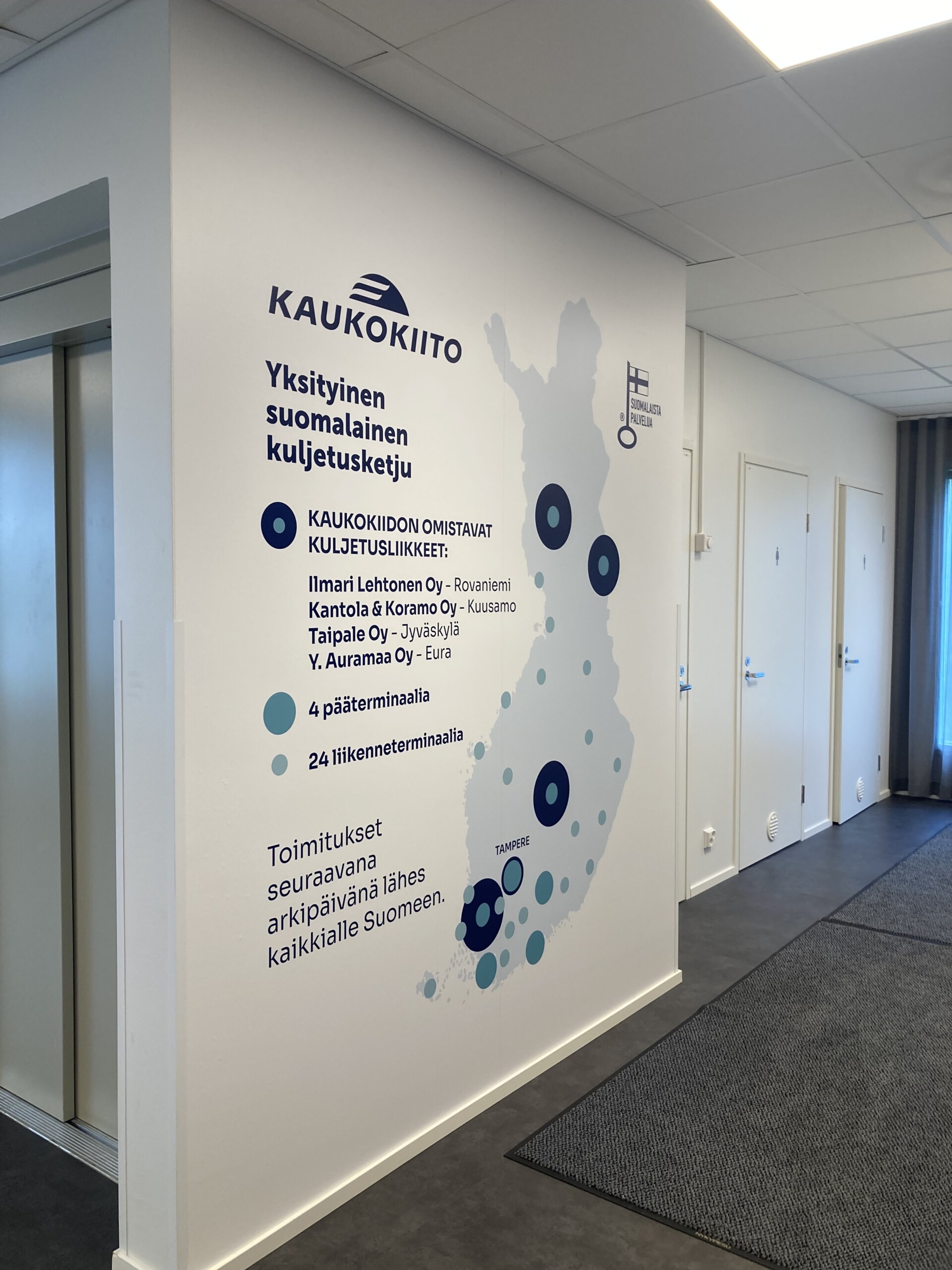 Toteutamme toimitilojen valokuvaseinäteippaukset laadukkaalla seinäteipillä ja mattalaminoidulla pinnalla.