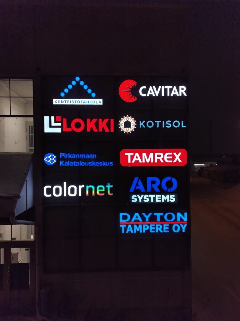 Teemme myös edullisia kotelomainoksia ja muotomainoksia, joissa sivut voidaan myös valaista haluttuun väriin tai tehdä jyrsittyjä etupintoja, jolloin vain halutut pinnan osat valaistaan.